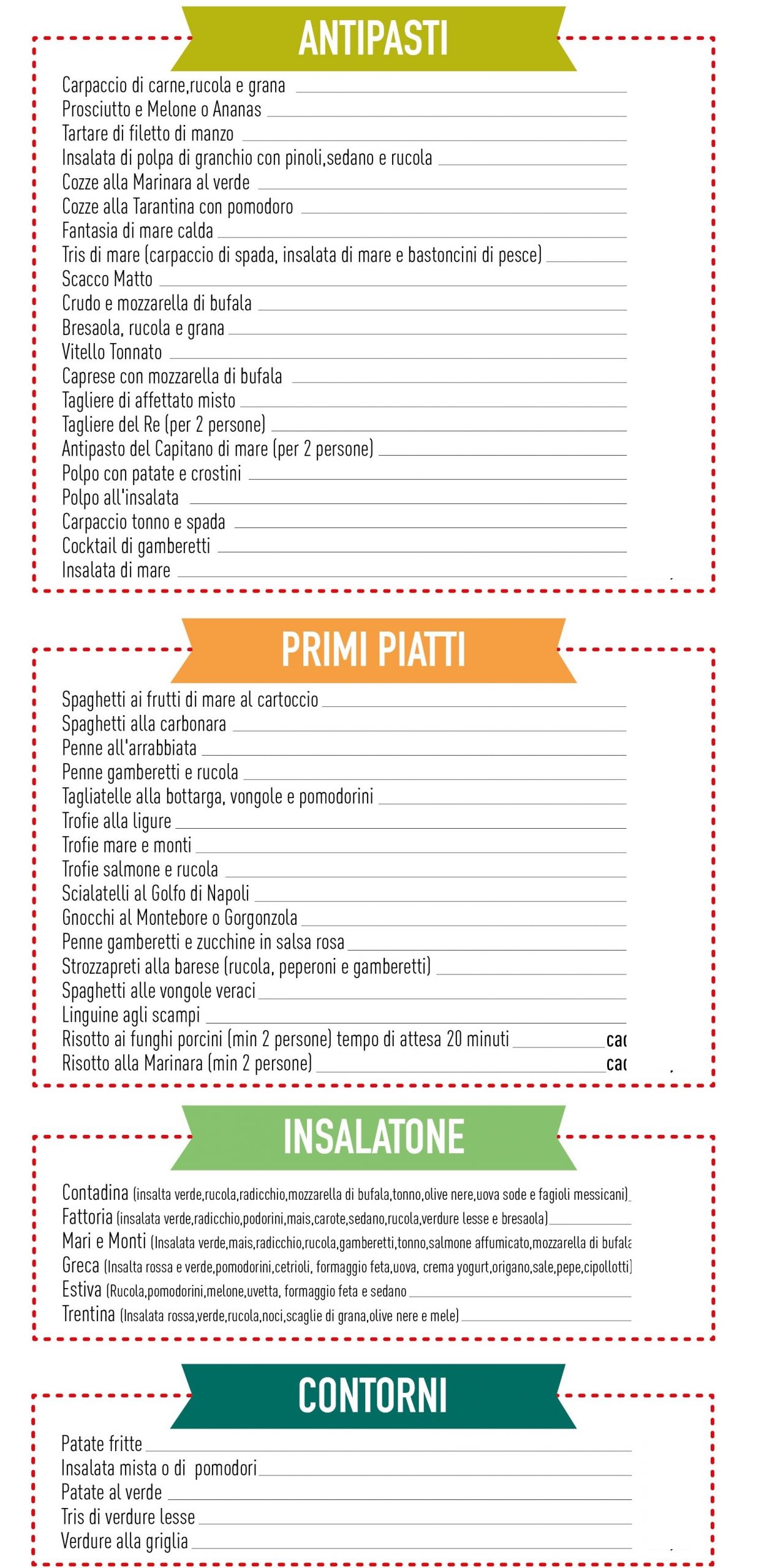 Offriamo molte varietà di piatti della cucina Italiana preparati al momento.